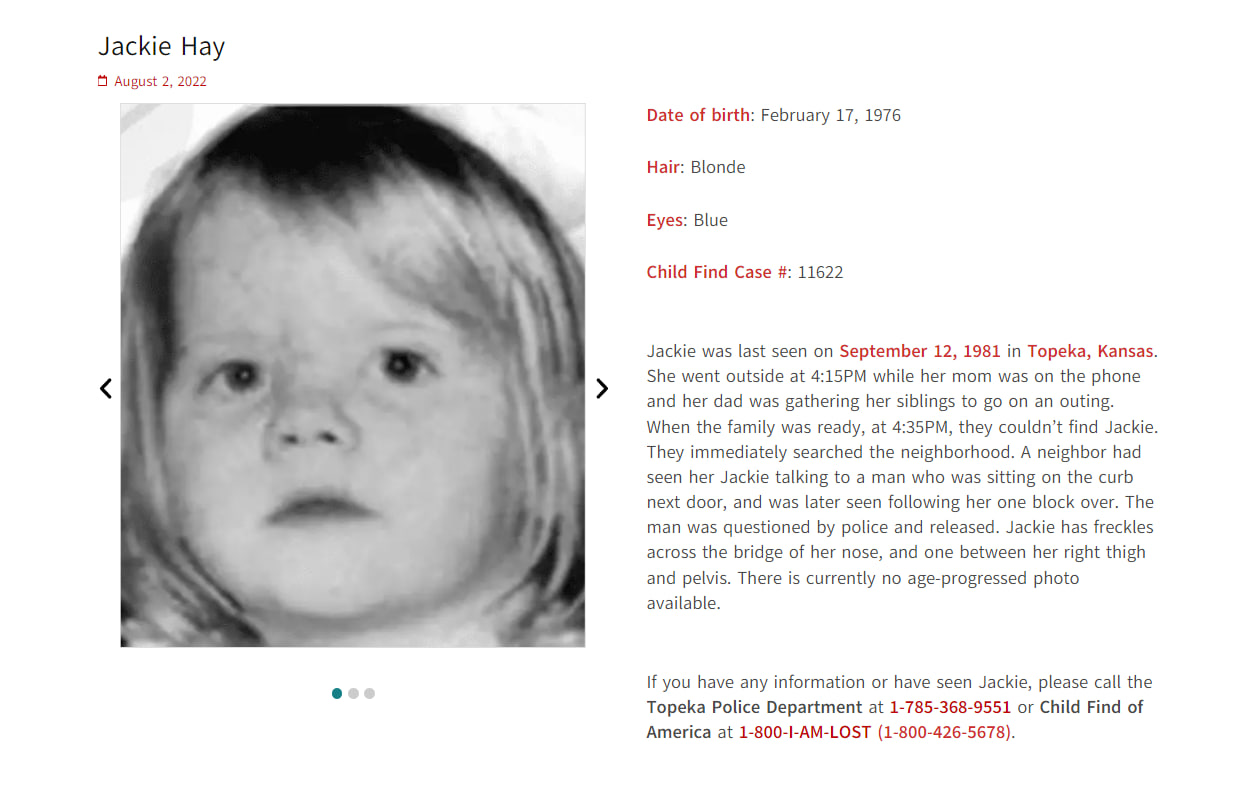 Author: https://childfindofamerica.org/jackie-hay/